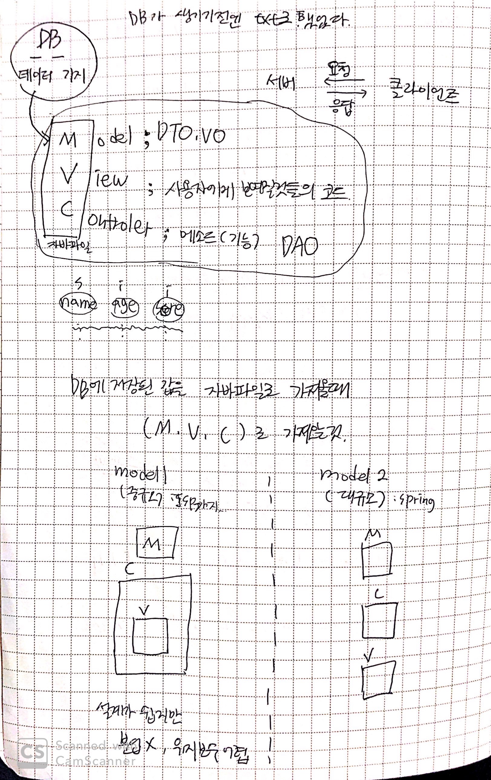 - model1 : 한 페이지 안에 view와 controller가 포함되어 있다.